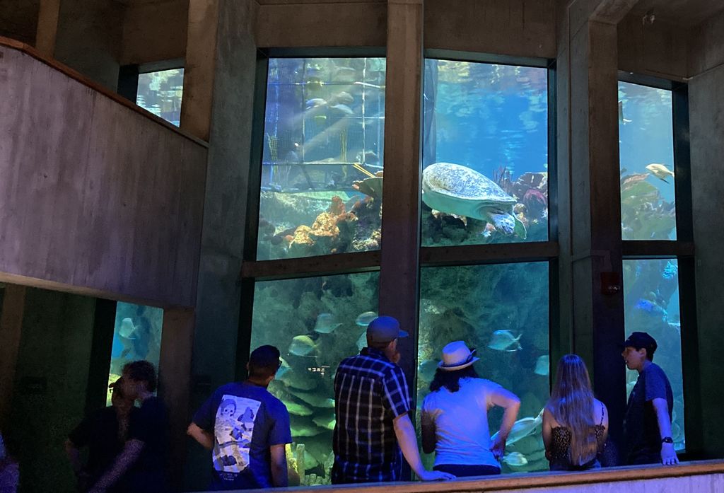 After the intense driving bout that took us from Quincy to the vast (and incredibly expensive) Boston Wharf parking lot, the girls booked their cruise and we quickly visited the New England Aquarium. It’s an eloquent endorsement of the place that, despite having been there many times, I don’t really get bored of it nor resent the eye-watering entrance fees: I’ve written glowingly of the aquarium before, but it’s superbly designed around a multi-story tank, and it’s got plenty of things to see every time. The junior members of our group didn’t have the patience to see everything, but we did once again take in the various exhibits. Junior Navigator found interesting jewelry in the gift shop, and that capped off our quick but satisfying tour of the Aquarium.