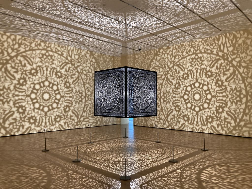 Well. I should have done my research because the Essex-Peabody Museum turns out to be a top-tier art museum, equal to what you would expect to find in much-bigger metropolitan areas. (Oh, sure, it’s partially financed by well-heeled Boston patrons but shush.) In between the repurposed heritage buildings, it offers several very good art galleries on themes you would not expect to see in a small northeastern city. Due to various quirks of history (notably Salem having historically been a central port for the American northeast), it has accumulated a deep collection of eastern art, and it bolstered that with several intriguing collections. In summer 2024, for instance, you could see a rather entertaining exhibit of Herman Melville’s Moby Dick editions, ranging from the classic to a modern rendition of the novel in emojis. An entire room is dedicated to Anila Quayyum Agha’s impressive All the Flowers Are for Me art installation.