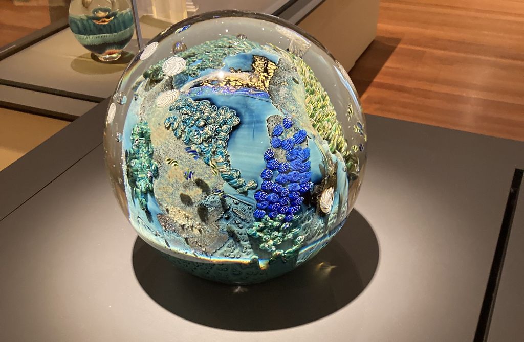The central section of the museum has a rotating art exhibit—in summer 2024, this was “Heartbeats and Harmony,” bringing together the talents of glass artist Robert Dane and painter Carl Lopes. I was particularly mesmerized by Lopes’s iridescent, intensely colourful, almost three-dimensional paintings (if that’s the right word for them). The exhibit is slated to travel—don’t miss it if it comes near you.