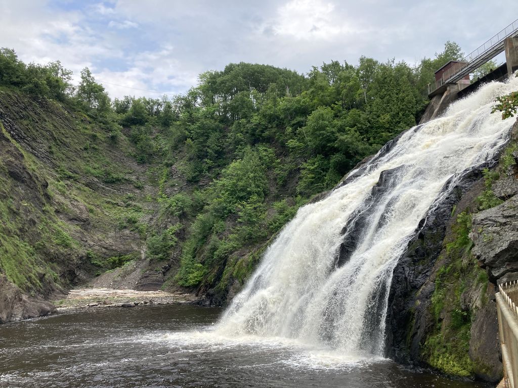 • The Parc des Chutes, which gives a great view of the titular River’s main 33-meter falls. The park is far, far bigger than just the falls, but we didn’t have the time or patience to walk through its 9 kilometres of hiking trails. Warning: As of July 2025, Waze does not know where that park is and will instead take you into the vicinity of the Parc de la Croix. Try “Centrale de Rivière-du-Loup” instead.