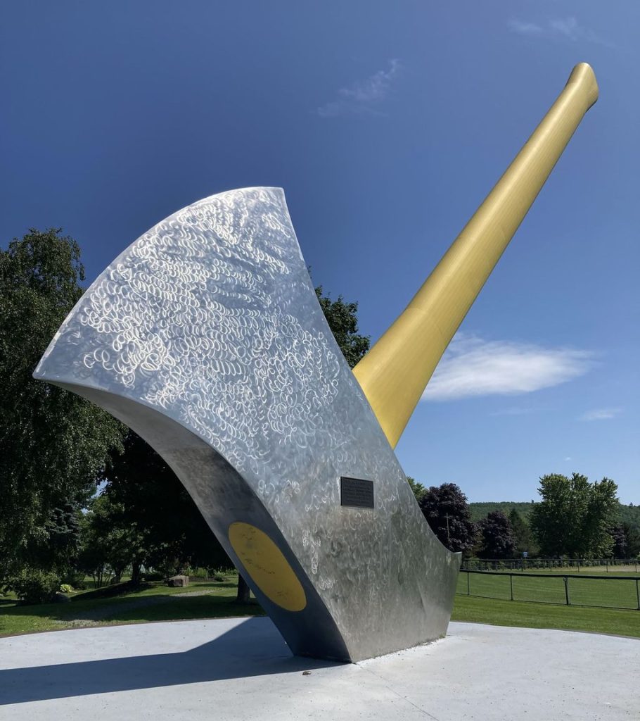 Slowly leaving Potato Country behind, we followed Route 2 as it changed direction along with the St. John River. Once the river bends to generally flow east rather than south, it leads to the provincial capital Fredericton’s metropolitan area. But before we could stop downtown, there was one more sightseeing opportunity: “Forestry Capital of Canada” Nackawic’s “World’s Largest Axe,” which is exactly what it says: A 15-meter-high axe sculpture and photo opportunity.