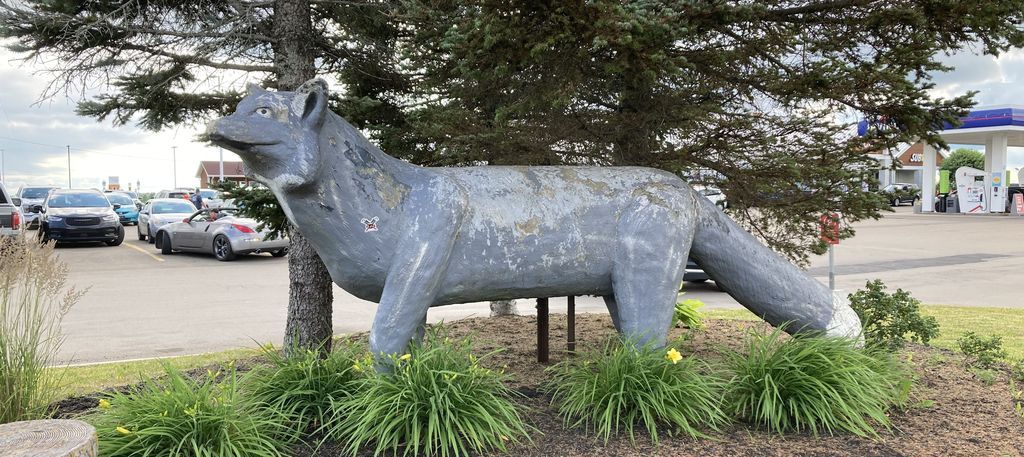 We had one last stop for the day before getting to Moncton—a gas-and-snack stop at Salisbury’s Big Stop rest stop. One of the many Irving everything-you-want-from-a-rest-stop throughout New Brunswick and elsewhere, the Silver Fox location was serviceable in all ways except one—the “World’s Largest Silver Fox” is a substantial disappointment—the pictures suggest a decent sculpture, but the reality is much uglier than pictured. At least there were enough snacks in the nearby Circle-K convenience store to make up for it.