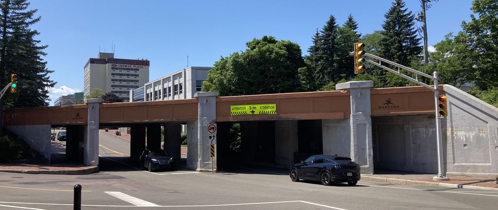Moncton’s painted subway overpass (formerly pink, now beige)