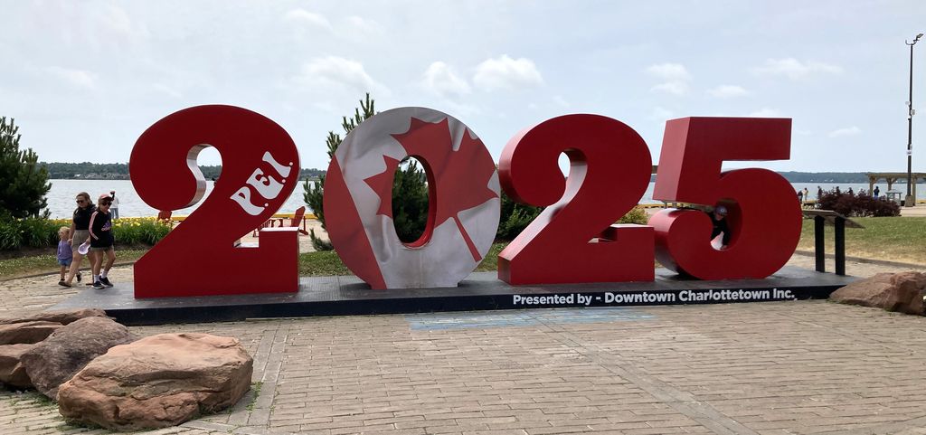 After a short chat with the cashier (I was the only person visiting the place at that time in the morning), I continued my way to Charlottetown, eventually making my way down its main commercial strip (Queen Street) to park on Queen’s Wharf. Sadly, no passenger liners were there that day—but I got pictures of the 2025 sign, the Love-Lock sculpture, and made my way via the Boardwalk to Peakes Quay with its assortment of gift shops and restaurants.