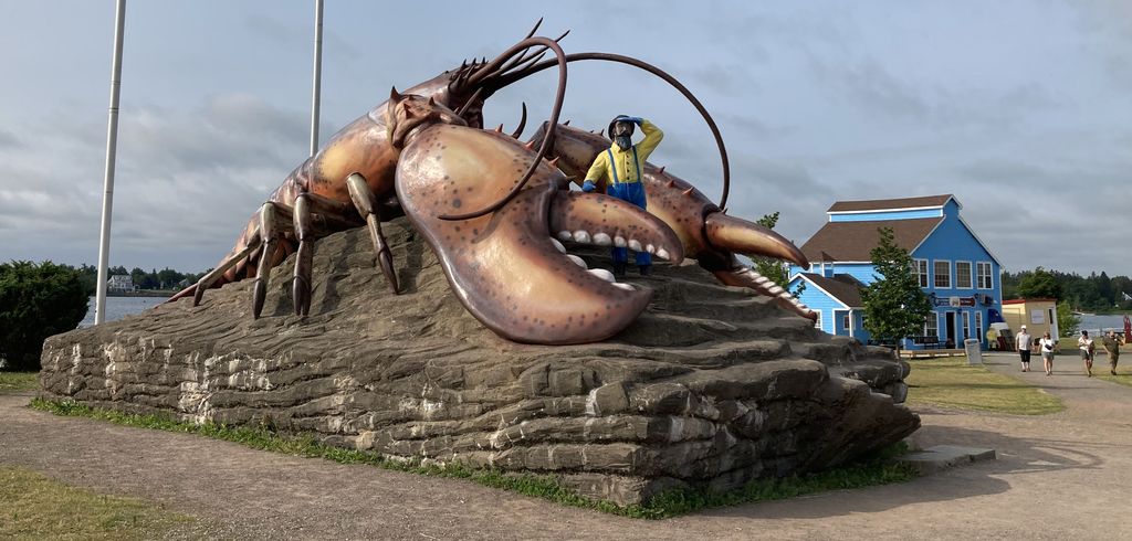 The way to Prince Edward Island did have one landmark or two along the way. By nine thirty, I was in Lobster Capital of the World Shediac, more specifically taking in the majesty of The World’s Largest Lobster—a 90-ton steel-and concrete installation featuring exactly what’s promised to passing tourists. The installation is beautifully set near a bridge, and has a full set of tourist amenities, including a visitor’s centre, washrooms, gift shop, ice cream vendors and such. Unmissable. (And indeed, the rest of the family would visit it an hour later on their way to the beach.)