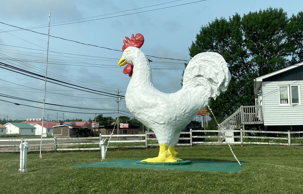 But wait, there’s more to see in Shediac! Specifically, a large rooster sculpture on the other side of town—not quite unmissable, but a good excuse to drive through downtown and see just how the city loves its lobsters and how it never misses a chance to showcase it. There’s lobster imagery everywhere in case you missed the town’s biggest claim to fame.